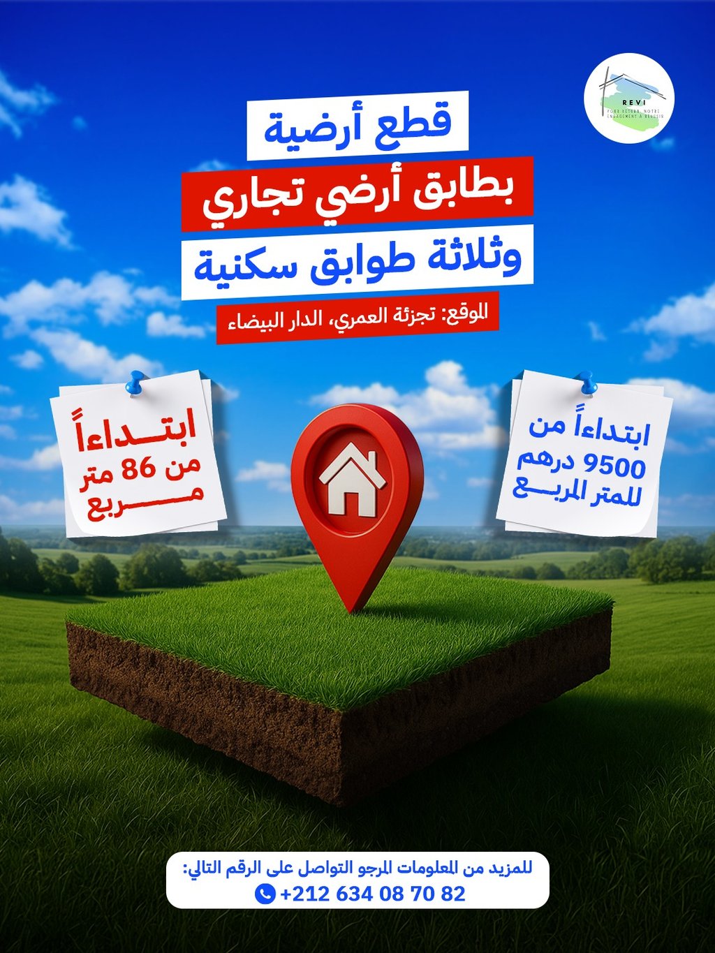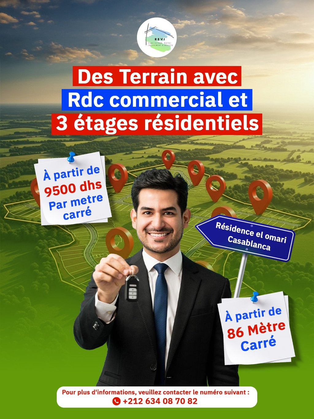 Les lots proposés démarrent à 86 m², avec un prix à partir de 9 500 MAD/m², offrant un excellent rapport qualité-emplacement.